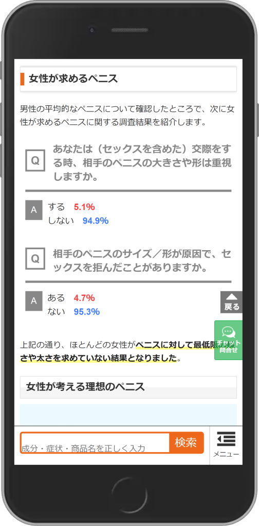 「え?じゃあ小さい僕のチンチンでも気にしなくてもいいの…?」なんて思ってしまいますが、同じサイトにこんなデータもありました。